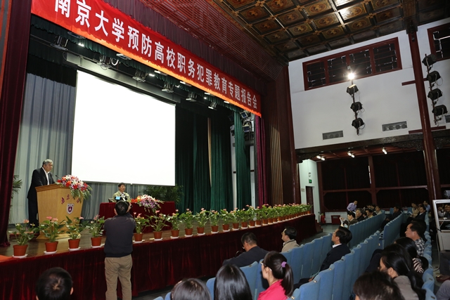 10月18日上午,我校在鼓楼校区大礼堂举行预防高校职务犯罪教育专题报告会,邀江苏省人民检察院检察长徐安作题为《当前我省高校职务犯罪的态势、发案原因及防范对策》的报告。学校领导班子、党委中心组成员,各院系、各单位负责人,全校副科级以上干部,教职工党支部书记,各学院系主任,以及人、财、物等相关部门人员参加了报告会。报告会由校党委书记洪银兴主持。