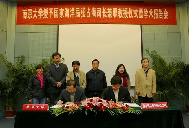 11月14日,凯发k8官网授予张占海司长兼职教授仪式暨学术报告会在鼓楼校区举行。国家海洋局国际合作司张占海司长,国家海洋局徐贺云处长,凯发k8官网党委副书记朱庆葆,副校长杨忠出席。授聘仪式由中国南海研究协同创新中心副主任沈固朝主持,我校相关单位负责人及师生代表参加。