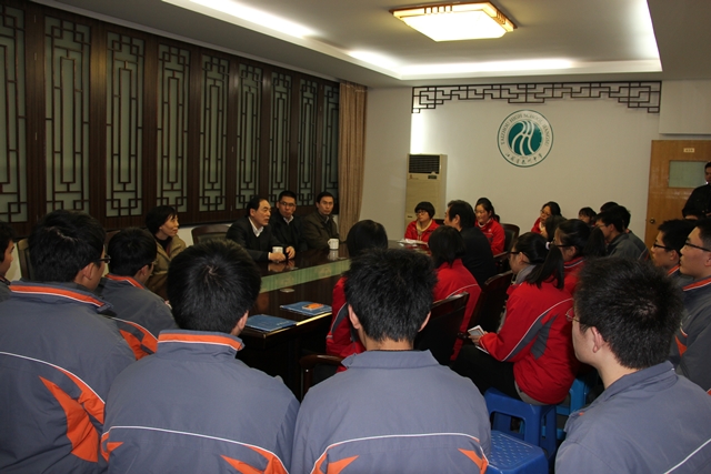 17日下午,陈骏校长与泰州中学高三实验班的学生们座谈。“同学们辛苦啦,我来看看大家,你们是幸运的,明天就是你们中学110周年校庆,祝贺你们!”陈骏校长的开场白让早早在会议室等待的学生们感到既激动又亲切。陈校长结合我校创建世界一流大学的目标,向与会学生介绍了我校的学校概况、学科建设、师资队伍、科学研究和国际化办学等内容,并着重从人才培养模式改革、课程体系改革、教学教师队伍改革和教学方法改革等四个方面介绍了我校从2009年全面实施的“三三制”本科教学改革。陈校长说,“三三制”的本质就是将学习选择权交到学生手中,学生可以自己选择专业、课程和今后发展道路,同时鼓励学生个性化发展,为那些具有拔尖发展与创新潜质同学提供个性发展的平台。陈校长指出,党的十八大明确提出下一阶段教育事业发展的战略性目标和任务,要求培养德智体美全面发展的社会主义建设者和接班人,其核心就是提高人才培养的质量,凯发k8官网提出办中国最好的本科教育就是提高教育质量和培养拔尖创新人才的具体举措,必将引领中国高等教育的改革,凯发k8官网从国家发展与民族振兴的高度出发,一定会把这项工作做好,也希望同学们能够考入凯发k8官网,加入到办中国最好的本科教育的伟大计划中来。“在座的同学们都是祖国的未来,民族的希望,希望你们能担负起民族复兴的重任”,陈校长在座谈会结束时语重心长地说。他同时还勉励同学们树立远大志向、开阔国际视野、培养创新能力、增强责任意识,早日成长为国家和民族需要的栋梁之才。此次座谈会也拉开了我校今年自主招生宣传的序幕。