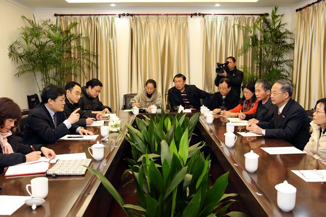 1月18日下午,张荣常务副校长在斗鸡闸会见云林科技大学杨永斌校长一行,人力资源处、教务处、财务处和台港澳办的代表共同参加会谈。