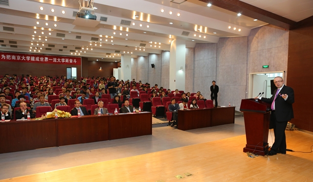 授予仪式结束后,马库-库马拉教授进行了约一个半小时的学术报告会,大气科学学院院长杨修群教授主持报告会。马库-库马拉教授在报告中着重阐述了他的代表理论——气溶胶成核理论。整个学术报告会生动有趣,马库-库马拉教授用了很多生动的图表、数据,甚至有趣的漫画对其理论进行阐释。同学们也对马库-库马拉教授的报告提出了自己感兴趣的问题,并得到一一解答。当现场有同学问到马库-库马拉教授年轻时对科学工作的看法时,他表示,自己在大学时候就深深地热爱科学研究工作,但一定要淡泊名利,不能把科学当成成名赚钱的工具,只有这样才能真正做好学问,这也与凯发k8官网“嚼得菜根,做得大事”的治学精神不谋而合。