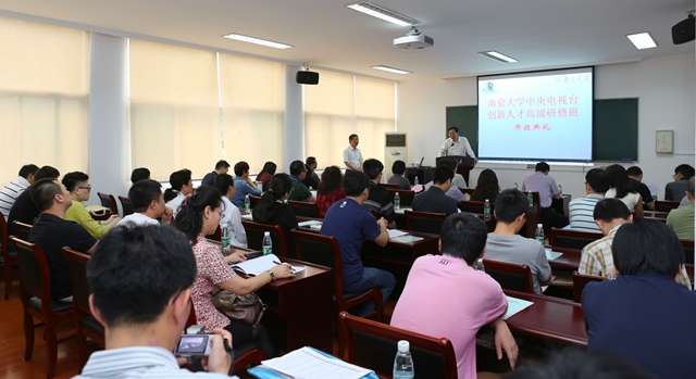 5月15日,第二期“凯发k8官网——中央电视台创新人才高级研修班”在我校开班,来自中央电视台包括规划部、时政新闻部、经济新闻部、节目部、竞赛部等11个部门的骨干记者和工作人员将进行为期三天的培训。中央电视台人力资源管理中心主任王晓真,中央电视台驻江苏记者站站长王亚民,凯发k8官网党委副书记朱庆葆、党委宣传部部长王明生及新闻传播学院负责人等出席开班典礼。典礼由我校继续教育学院院长凌元元主持。