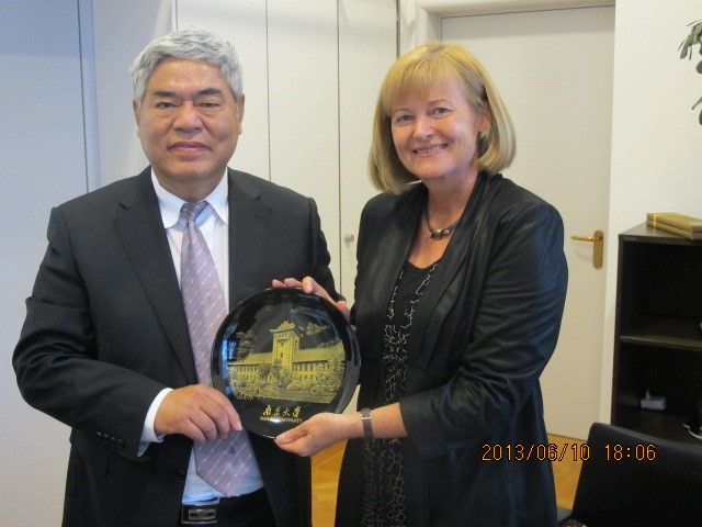2013年6月10日,洪银兴书记应邀率团访问奥地利格拉茨大学,与格拉茨大学校长克里斯塔?诺伊佩尔就推动两校交流与合作进行深入探讨。格拉茨大学系统科学、创新与可持续发展研究院院长鲁伯特?鲍姆加特纳,格拉茨大学社会及经济学院学术院长托马斯?富诗德,以及国际处处长萨宾?潘德共同出席会见。
