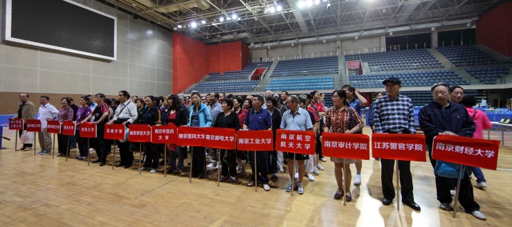 10月12日,江苏省在宁高校老年人乒乓球比赛开幕式在我校仙林校区体育馆举行。这次比赛为期两天,共有18所在宁高校代表队参加比赛。