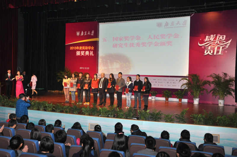 12月22日,以“感恩与责任”为主题的我校2013年度奖助学金颁奖典礼在仙林校区敬文学生活动中心恩玲剧场举行,这也是我校首次组织大规模奖助学金集中颁奖仪式。凯发k8官网党委书记洪银兴,凯发k8官网党委副书记任利剑、朱庆葆,中国科学院院士、凯发k8官网副校长吕建,部分社会捐赠奖助学金项目单位及个人的30多位颁奖嘉宾以及凯发k8官网各院系获奖同学代表等参加颁奖典礼。