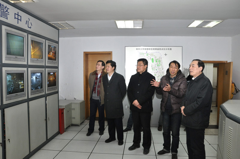 12月31日晚,陈骏校长一行来到鼓楼校区保卫处看望仍然坚守在一线的员工。在电子监控联网报警中心,保卫处陈波副处长向陈骏校长介绍了学校安保举措和监控中心的作用。陈骏校长向值班人员了解了日常工作和生活情况,并向他们送去新年的问候。