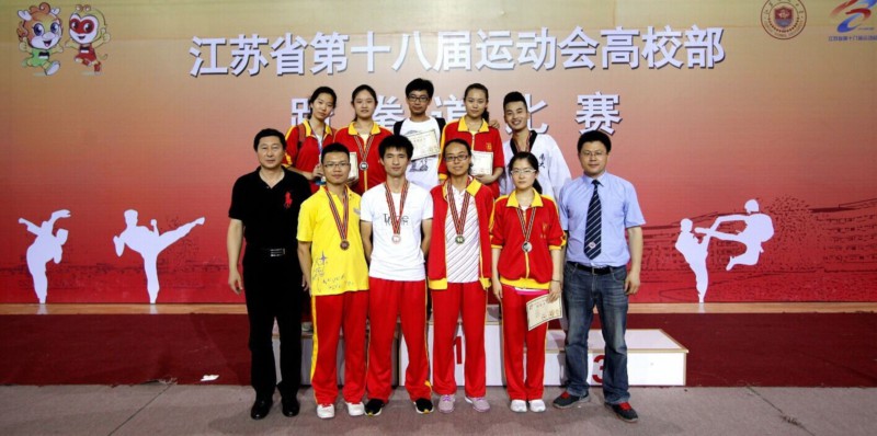 江苏省第十八届运动会高校部跆拳道比赛于7月5日至9日在江苏师范大学举行。本次比赛共有55所高校381名运动员参加,分高水平组、普通本科组和高职高专组三个组别进行比赛,其中普通本科组有24所高校参加,竞争尤为激烈。我校跆拳道队员都是从普通学生中选拔产生的,他们利用课余时间和节假日刻苦训练,在赛场上不畏强手、敢打敢拼,充分展现了凯发学子积极向上的精神风貌,比赛中斩获2金 2银 2铜,并获得普通本科组团体总分冠军。