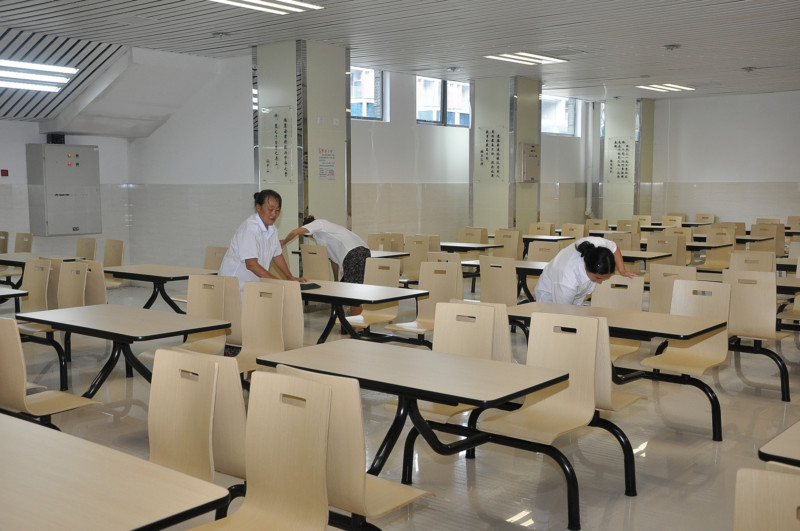 在学生第十一食堂,张异宾书记一行来到餐厅大厅和后台操作间。后勤保洁阿姨正在擦拭着崭新的桌椅,后台的操作间中各项设施也正在紧张调试之中。据介绍,新食堂将在25日开始全面提供服务,在第一时间为新入住的同学提供可口饭菜。