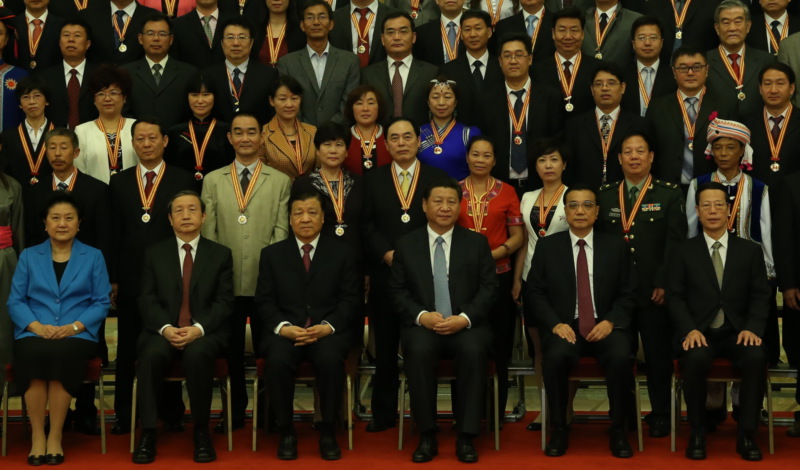 上午,习近平等中央领导同志走进人民大会堂北大厅,全场响起热烈掌声。习近平等高兴地与受表彰代表热情握手,向受到表彰的先进集体和先进个人表示热烈祝贺,向全国广大教师和教育工作者致以节日的问候。随后,习近平、李克强、刘云山、张高丽等与大家合影留念。