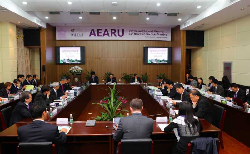 2014年10月31日上午,东亚研究型大学协会(AEARU)第35届理事会暨第20届年会在我校举行,来自韩国、日本及中国大陆、香港和台湾地区的15所成员学校及QS代表出席会议,陈骏校长以理事长身份主持会议并讲话。大会就2014年度协会已完成的活动及2015年度协会拟开展的项目进行了交流。