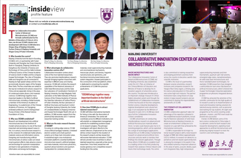 此外,《2014自然指数-中国》还刊载了我校牵头的“人工微结构科学与技术协同创新中心”的介绍和中心主任的访谈。