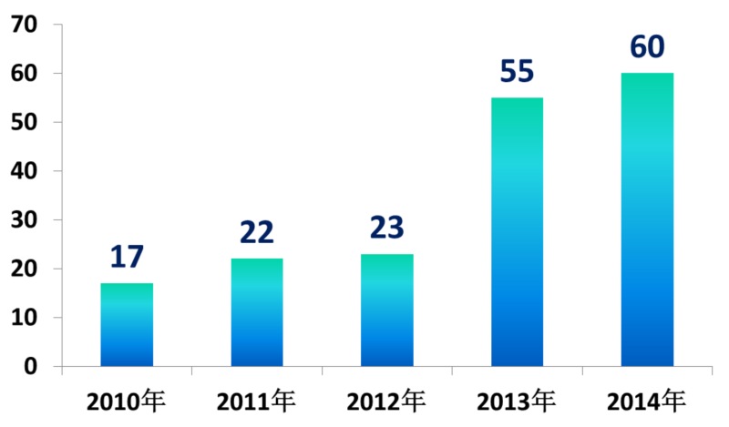 图2. 凯发k8官网2010-2014年发表的超一流期刊及学科群一流期刊论文总数的变化图 (科技处 制图)