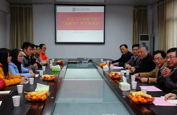 在力行馆,张异宾书记参加了金陵学院“迎新年”学生座谈会。张异宾书记鼓励同学们畅所欲言,本着加强和改进工作的宗旨,多谈意见和建议。来自金陵学院不同院系的十余位同学就学习辅导、贫困补助、勤工助学、公益活动、教学方式、条件保障等方面提出了建议。