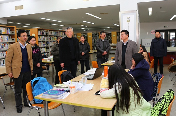 在思源图书馆,张异宾书记和工作人员亲切交谈,询问图书馆的建设情况,并对图书馆如何更好地服务师生这一问题听取工作人员的想法和建议。张异宾书记走到同学们中间,送给大家新年祝福,勉励正在紧张复习迎考的同学们,刻苦学习,坚持不懈,辛勤耕耘,收获成功。