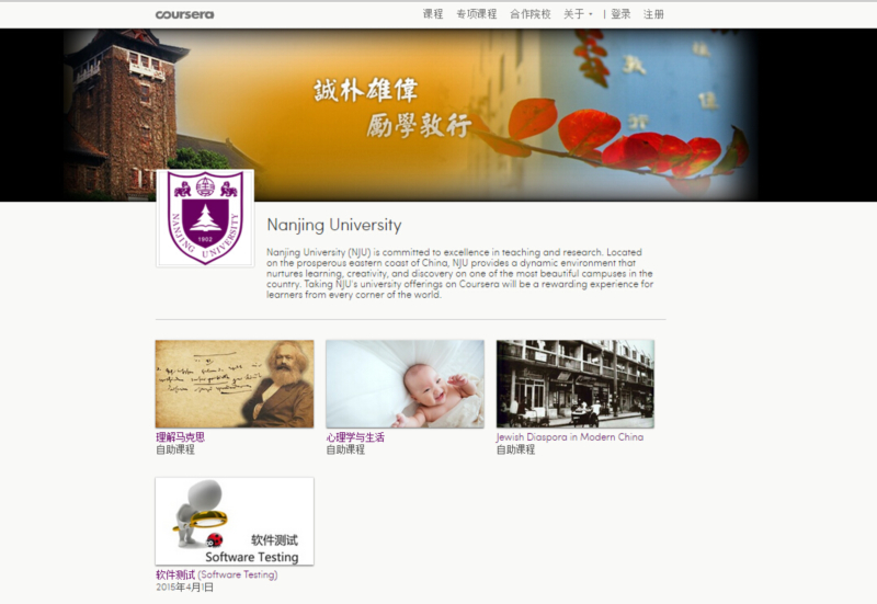 2015年3月18日,我校第一批慕课课程将正式上线国际平台Coursera,全球学习者可登陆Coursera自助选修。该批课程共4门,包括《Jewish Diaspora in Modern China》(《现当代犹太在华散居》)、《理解马克思:马克思的生平和核心著作导论》、《心理学与生活》及《软件测试》。