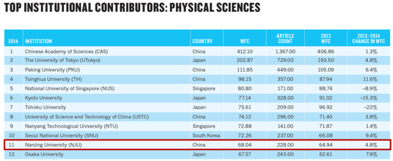 图5: 2015自然指数物理学科亚太地区前12位机构名单