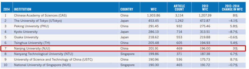 图2:2015自然指数亚太地区前10位机构与高校名单